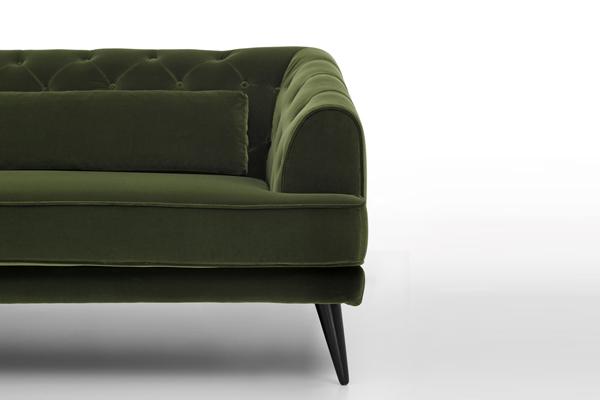 un gran bel divano, di una comodità incredibile, con tanti argomenti: finemente realizzato con un'attenzione ai dettagli degna di un prodotto di sartoria. La scocca è tutta in legno, il molleggio della seduta dato dalle cinghie elastiche, le imbottiture in poliuretano sono a densità diferenziata con intercapedine traspirante; tutti i cuscini sono prefoderati (significa che si ha accesso al poliuretano attraverso una fodera incernierata sopra alla quale c'è la vera e propria fodera di rivestimento e non quella fastidiosa ovatta ruvida e appiccicosa)dettaglio che può fare una grossa differenza nel caso si rovescino liquidi abbondanti che rendano necessario un lavaggio approfondito. I cuscini della seduta hanno uno strato in memory, quelli dello schienale uno strato in piuma. Tutti questi aspetti rendono il divano solido, duraturo, manutenzionabile e molto molto comodo.