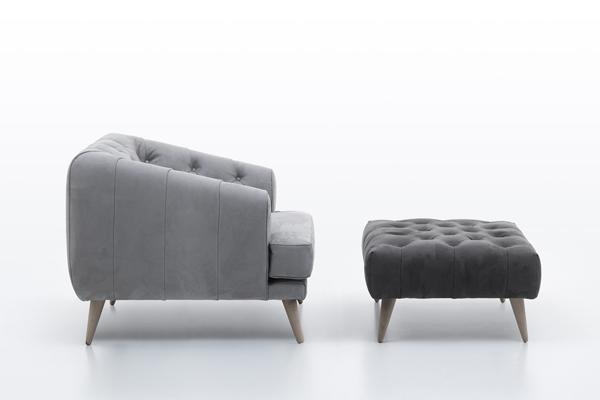 Due tipi di piedini (staffa metallica inclinata o piedino inclinato in legno) e possibilità di avere le cuciture in contrasto. La gamma di tessuti disponibili è ampia e ricercata (abbiamo immagini in alta definizione da inviarvi ed eventualmente anche campioni di tessuto).