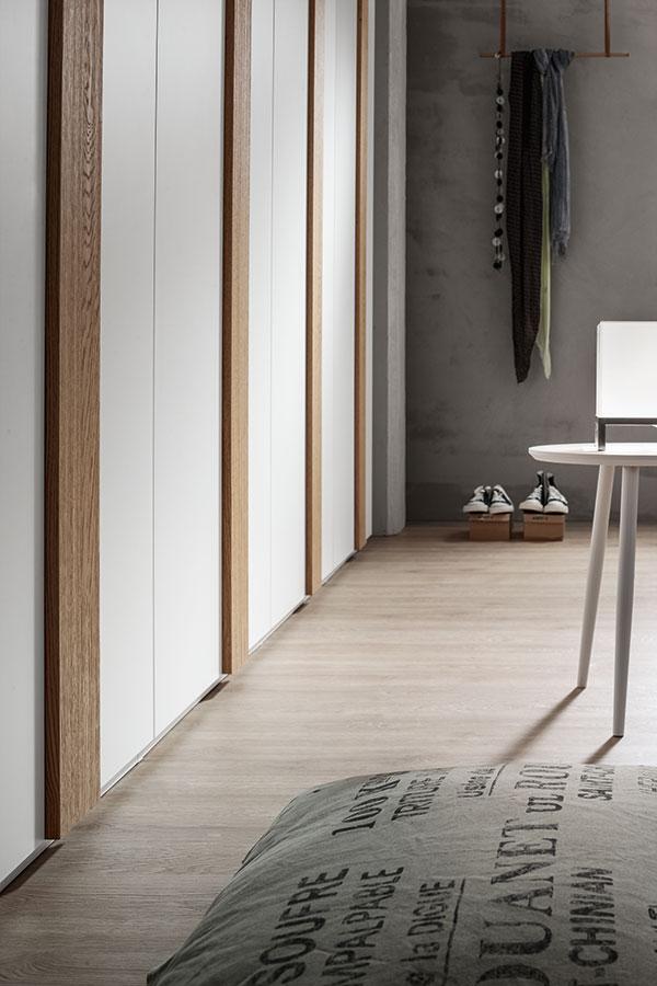 un nome nordico per una camera un po' diversa: il letto è leggero,impiallacciato in legno nodato dal design curato in stile scandinavo, due cuscini in ecopelle bianca per aggiungere comfort. Cassetti e como' con anta a forte spessore (stessa finitura nodata) e struttura bianca, luminosa e leggera. L'armadio ideale per questa camera è bianco con fascione verticali impiallacciate.