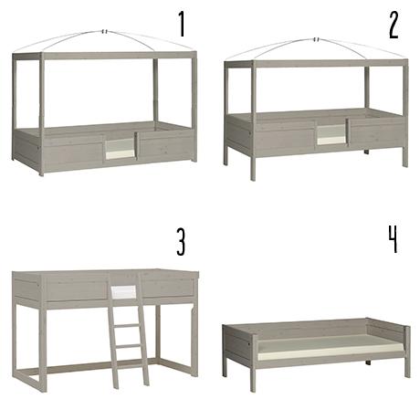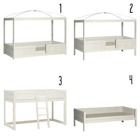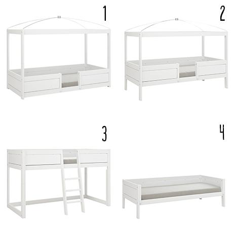 (4) Si arriva infine al letto per adolescenti: semplice, senza sponda laterale, con o senza il baldacchino. Tutte queste soluzioni sono realizzabili senza dover acquistare parti in futuro. Il letto è realizzato completamente in legno di pino proveniente da foreste svedesi eco-sostenibili , disponibile in tre finiture: laccato bianco opaco o finito a calce (venatura del legno visibile) bianco o grigio...un letto che ti piacerà!