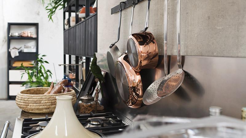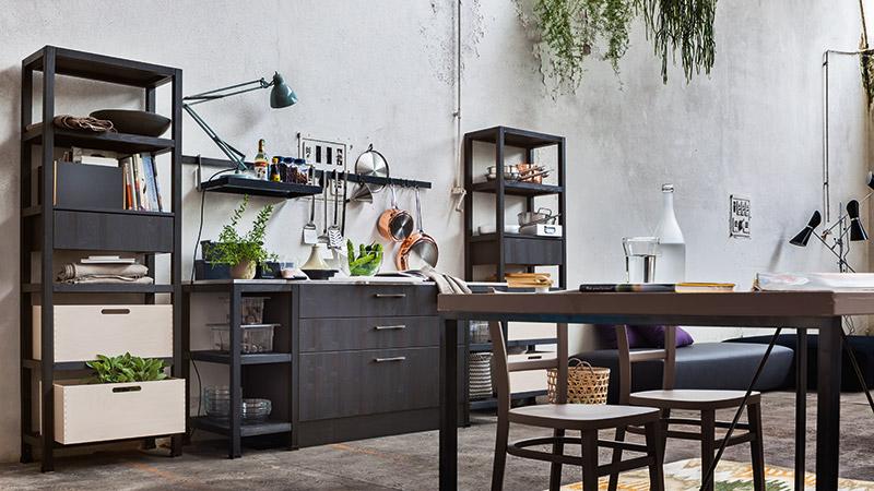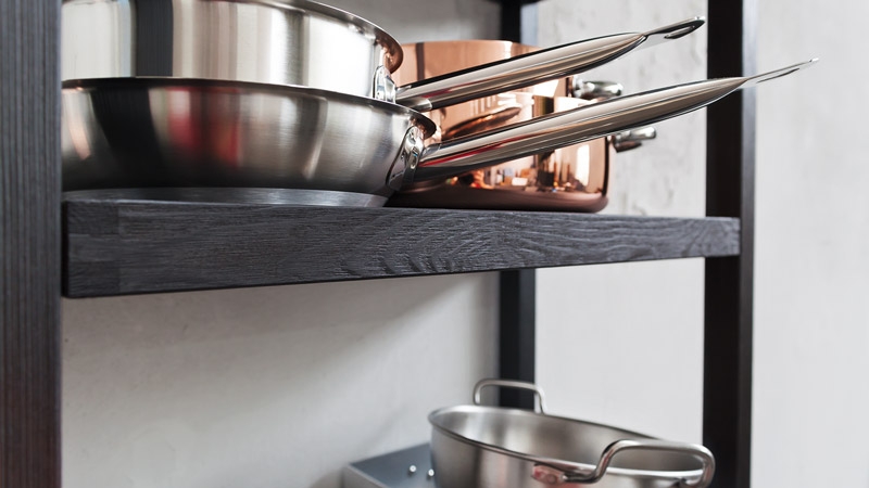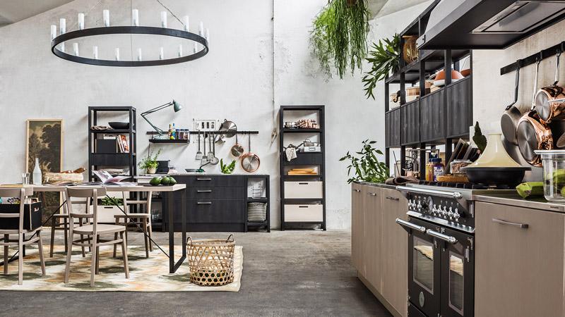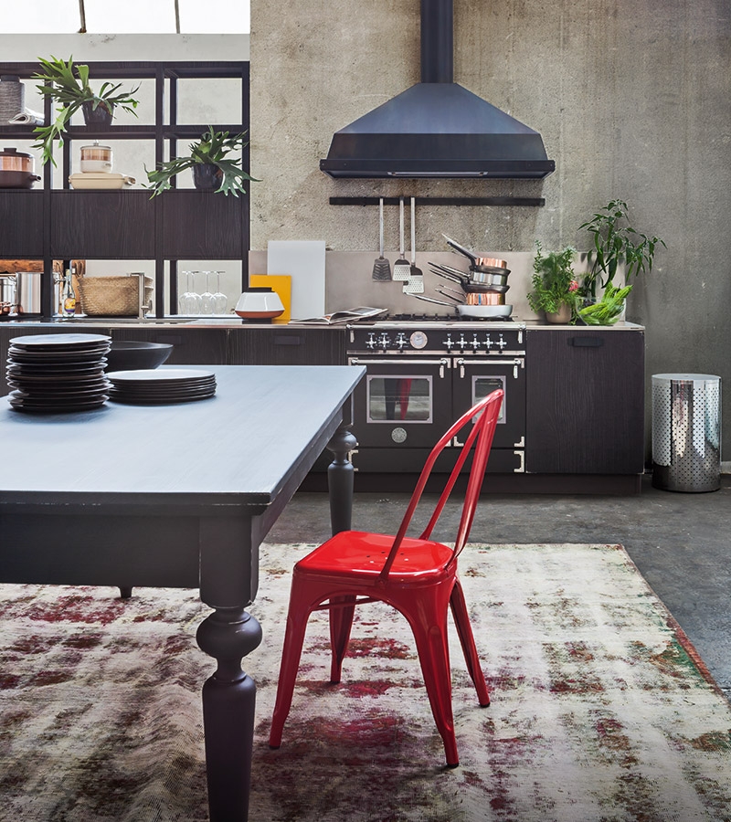 Cucina in legno massello di abete, spazzolato e tinto con vernici all'acqua. Un pordotto di ottima qualità fatto per durare una vita, proposto con un design molto deciso e moderno. Le tinte sono a contrasto: una finitura burro laccato coprente abbinata ad un tinto antracite. Maniglie e cappa sono in ferro brunito. Questa cucina è parte di un programma componibile che consente di realizzare la cucina su misura, per tutte le necesità e tutti gli spazi. Molto interessante l'inserimento di elementi a giorno a profondità ridotta, attrezzati con cassetti e cestoni, vicino alle basi contenitore, completano, aggiungono spazio utile per robot da cucina e utensili da avere a portata di mano senza chiudere e appesantire. Il top slim in acciaio inox spazzolato è bellissimo abbinato al lgno. Particolare il gruppo cottura da 90, con doppio forno ed esttica retrò.