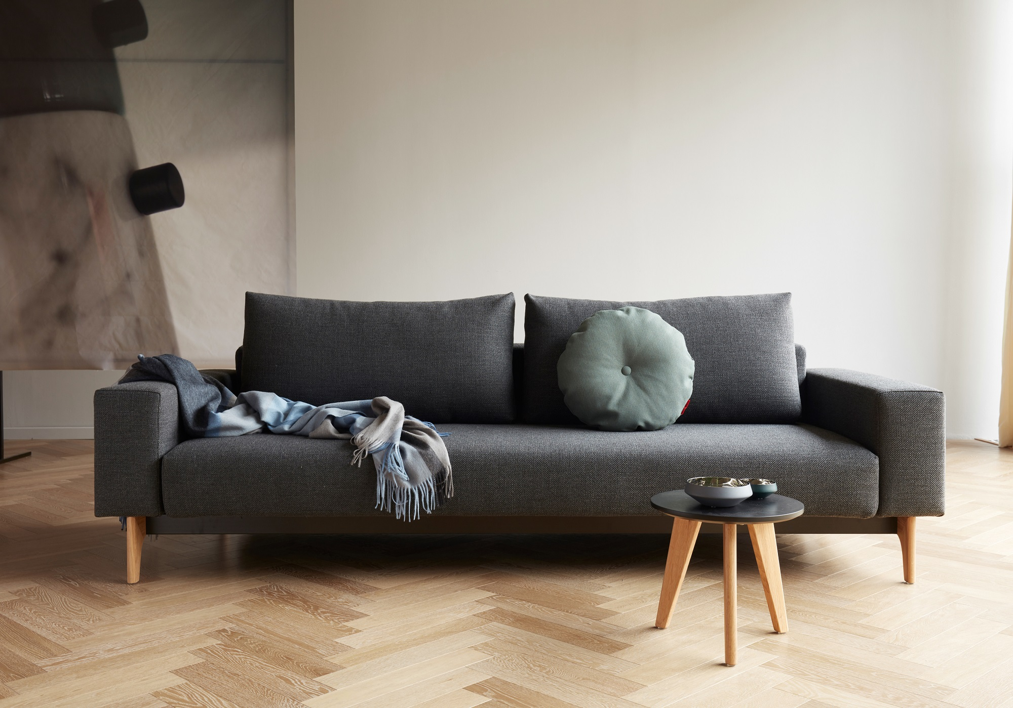 Divano lineare, con braccioli, semplice di poco ingombro, si trasforma in letto in un attimo con gesti agili e brevi. E' realizzato con materassi a molle insacchettate perciò comodissimo sia come letto che come divano. Idun viene proposto in due tessuti di serie: grigio chiaro e grigio scuro. Su richiesta è possibile averlo anche in uno dei 32 tessuti a cartella (con tempi di consegna prolungati). Il poggia testa è un optional che puoi acquistare a parte, guarda in basso tra gli articoli correlati