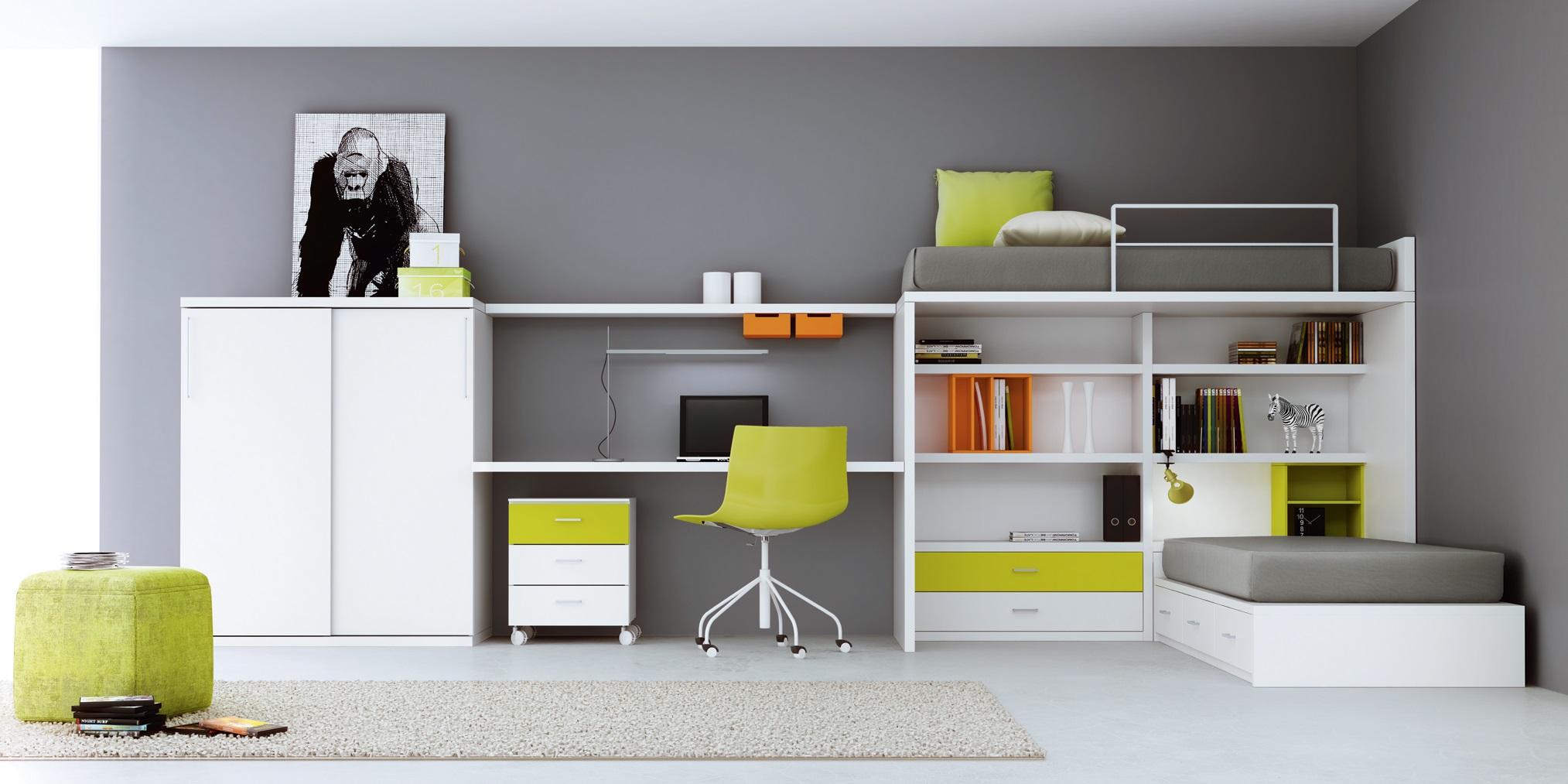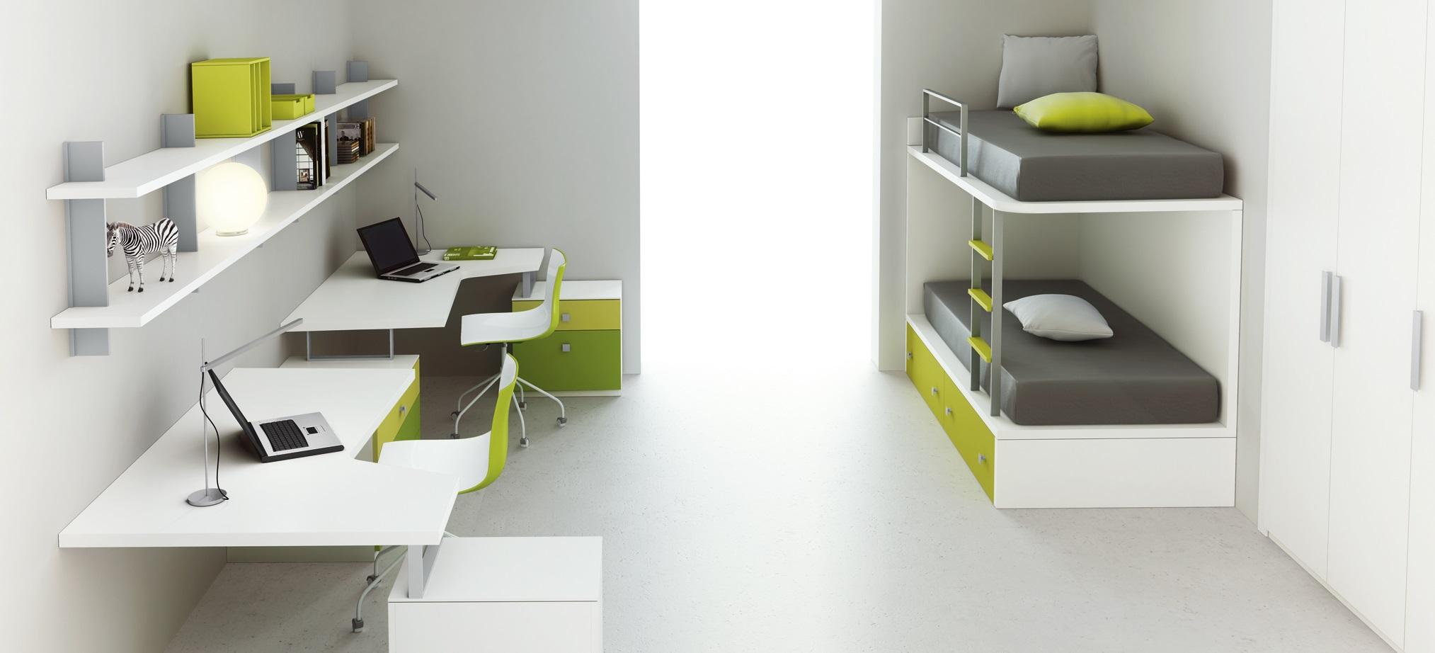 davvero bello questo programma di camerette made in Spain, il design è semplice e lineare, un letto a castello concepito per i piccoli spazi, per non 'chiudere' la stanza, per lasciar passare la luce e dare ampiezza all'ambiente. Il risultato oltre che esteticamente gradevole e rilassante è essenziale, pratico ed elegante. I colori a disposizione sono tanti: 20 laccati , tre essenze e due melaminici. I pianali sono pensati per materassi standard (80x190) o più grandi (90x190 e 90x200) inoltre è possibile richiedere personalizzazioni come ad esempio il letto a castello ad una piazza e mezza.