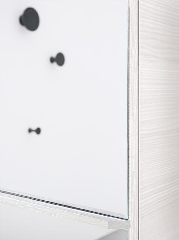 La maniglia è in massello e segue il colore dei frontali, nel caso delle ante a specchio segue il colore della struttura.