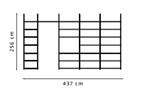 Misure della composizione: L. 437 x P.36.4 x H. 256 cm