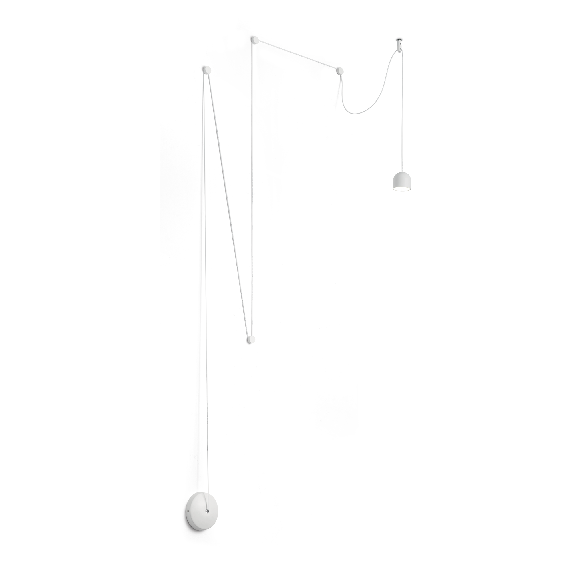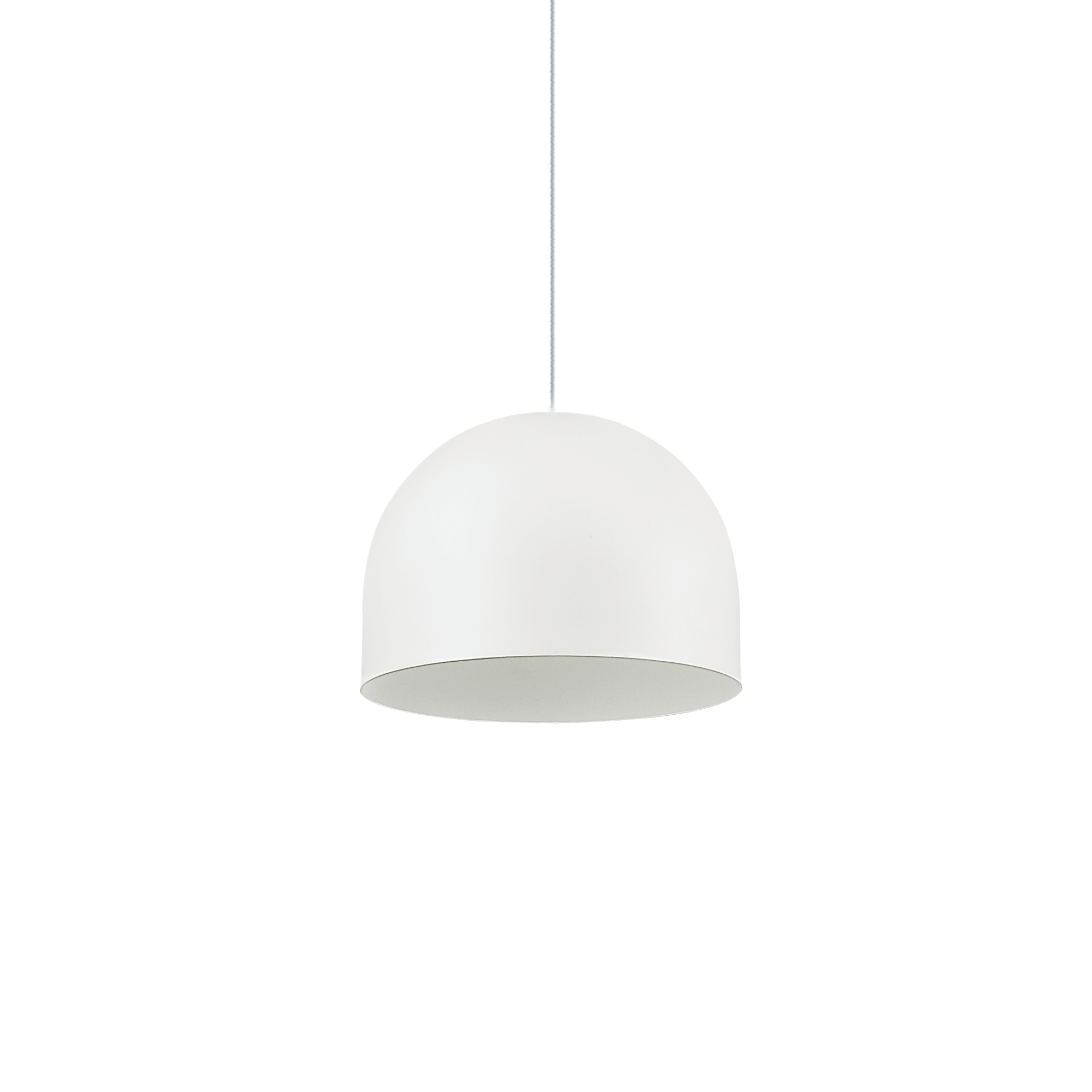 Lampadario a sospensione con diffusore e dettagli in metallo verniciato opaco. Modello SMALL con led integrato e schermo opale. Modello BIG aperto e con lampadina sostituibile. L'eccezionale lunghezza del cavo consente di posizionarlo fino a 578 cm di altezza (dritto in sospensione o con gioco)