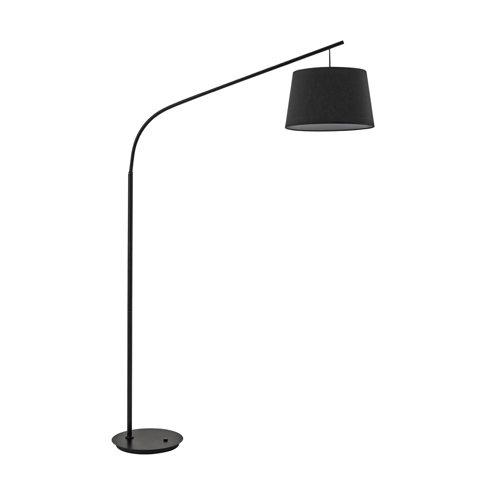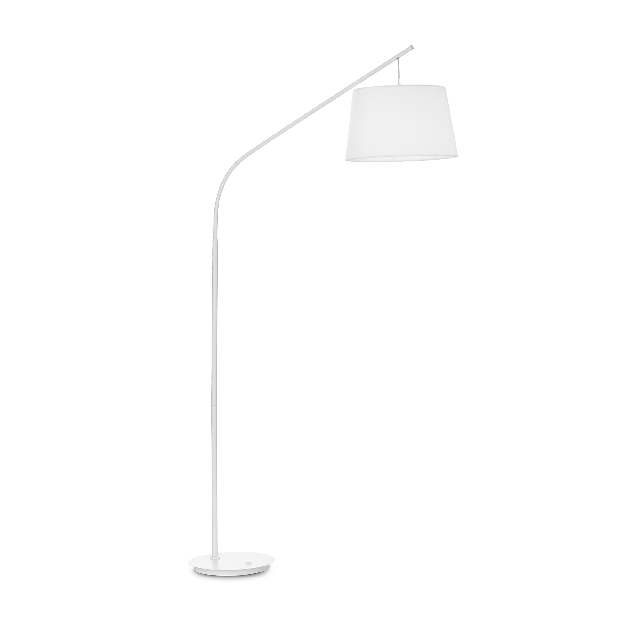 Lampada da terra con montatura in metallo. Disponibile in nero e bianco opaco con paralume rivestito in tessuto.