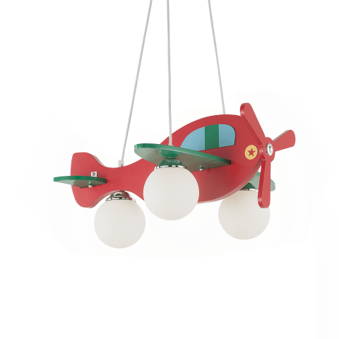 Sospensione per interno, corpo luce e rosone in legno dipinto con vernice opaca. Dettagli in metallo cromato. Diffusori in vetro soffiato bianco acidato.