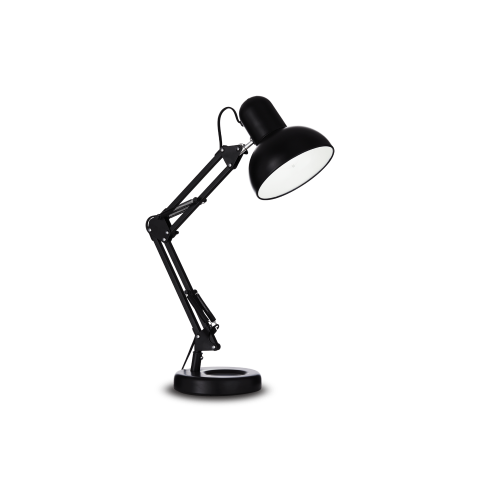 Lampada da tavolo per interno, lampada tecnica in metallo con finitura bianco o nero opaco. Braccio snodato e bilanciato a molle. Diffusore orientabile