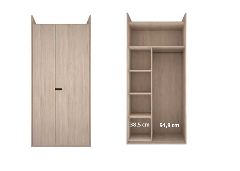 L'armadio è in melaminico bianco e misura L.100x p.60x h.219,2 cm. la scrivania è in melaminico Roble olut e in ferro dark con le seguenti misure L.140x p.72,4x h.75 (da terra a sopra piano + 10 cm di schienalino) cm con cassettiera su ruote in melaminico bianco L.44x46,6x44,4 cm.