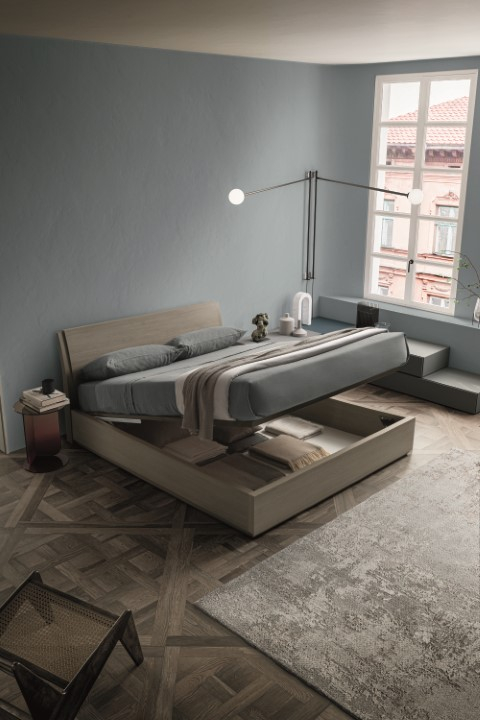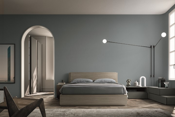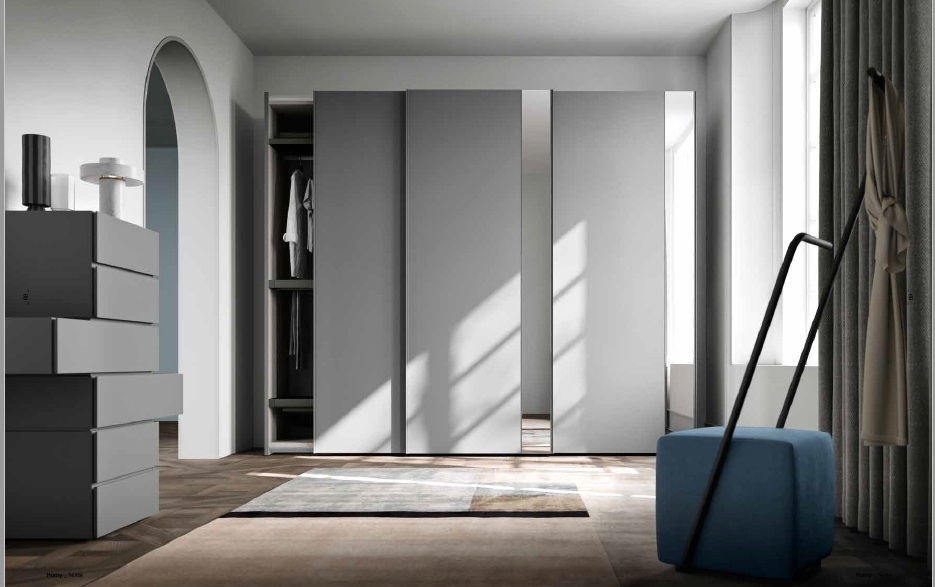 La camera è composta da un letto in essenza (matwood grey) un armadio ad ante scorrevoli con fasce specchio.Trattandosi di un sistema componibile, va configurato sulle dimensioni del tuo spazio quindi non puoi acquitìstarlo con un click, se desideri un preventivo o maggiori informazioni contattaci, rispondiamo entro 24h