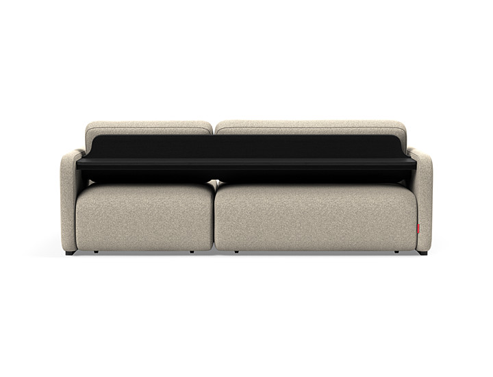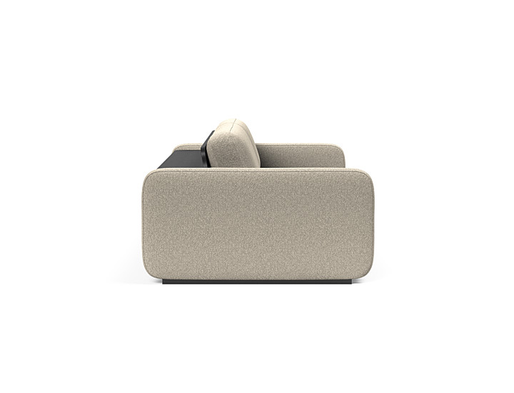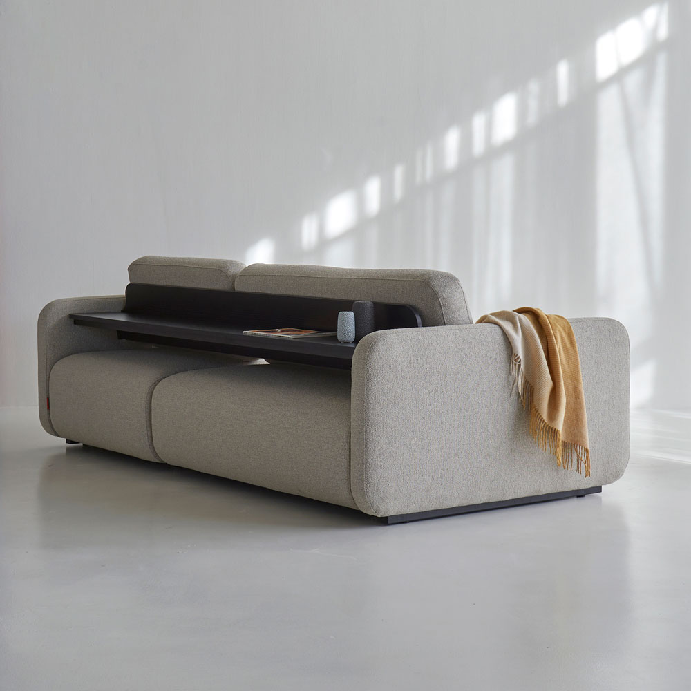 Vogan nella versione classica (prof.120) o Lounger (prof.160) unisce comfort e design, un divano compatto e minimale con sedute estraibili che aumentano la profondità per consentire di allungare le gambe. Adatto ad essere posizionato in centro stanza poichè sul retro ha uno scaffale integrato, con ripiano in legno nero.
