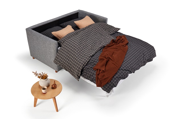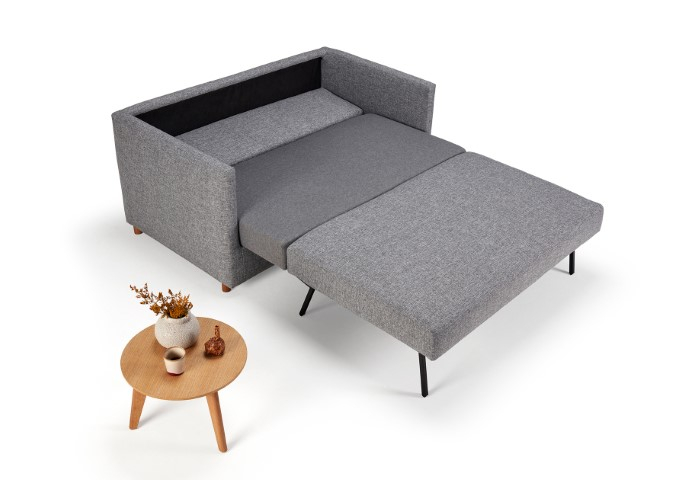 divano letto super compatto dal minimo ingombro. Un divano a due posti che si trasforma in un letto matrimoniale (materasso 140x190, misura francese). L'apertura in letto aviene con gesti semplici senza meccanismi faticosi. Comodo come divano così come letto, perfetto per i piccoli spazi.