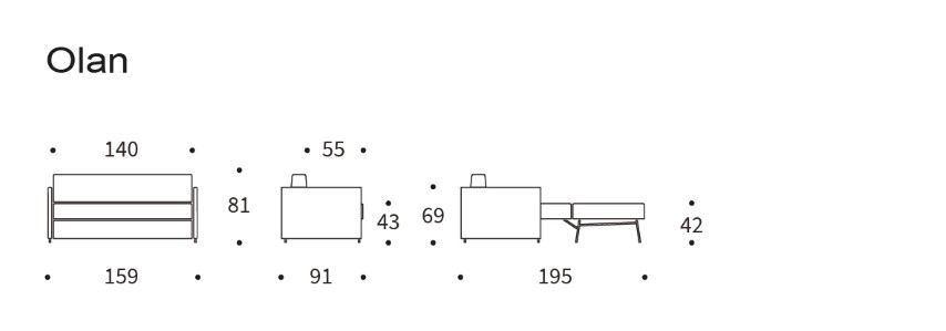 Dimensioni : divano chiuso : 159 x 91 x h 81 cm - divano letto : 159 x 200 cm, materasso: 140x195 cm