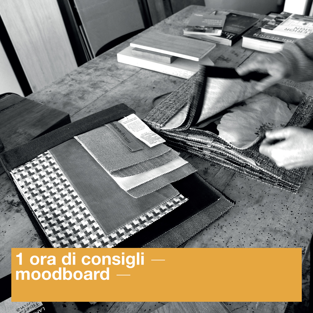 Alla chiacchierata di un’ora del pacchetto 1, farò seguito con una mail in cui ti invierò il mio riscontro, suggerimenti, indicazioni, e una Moodboard pensata sui tuoi gusti e le tue esigenze. La Moodboard rappresenta una raccolta di linee guida rese da immagini e colori che ti serviranno per orientare le tue scelte.